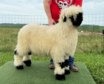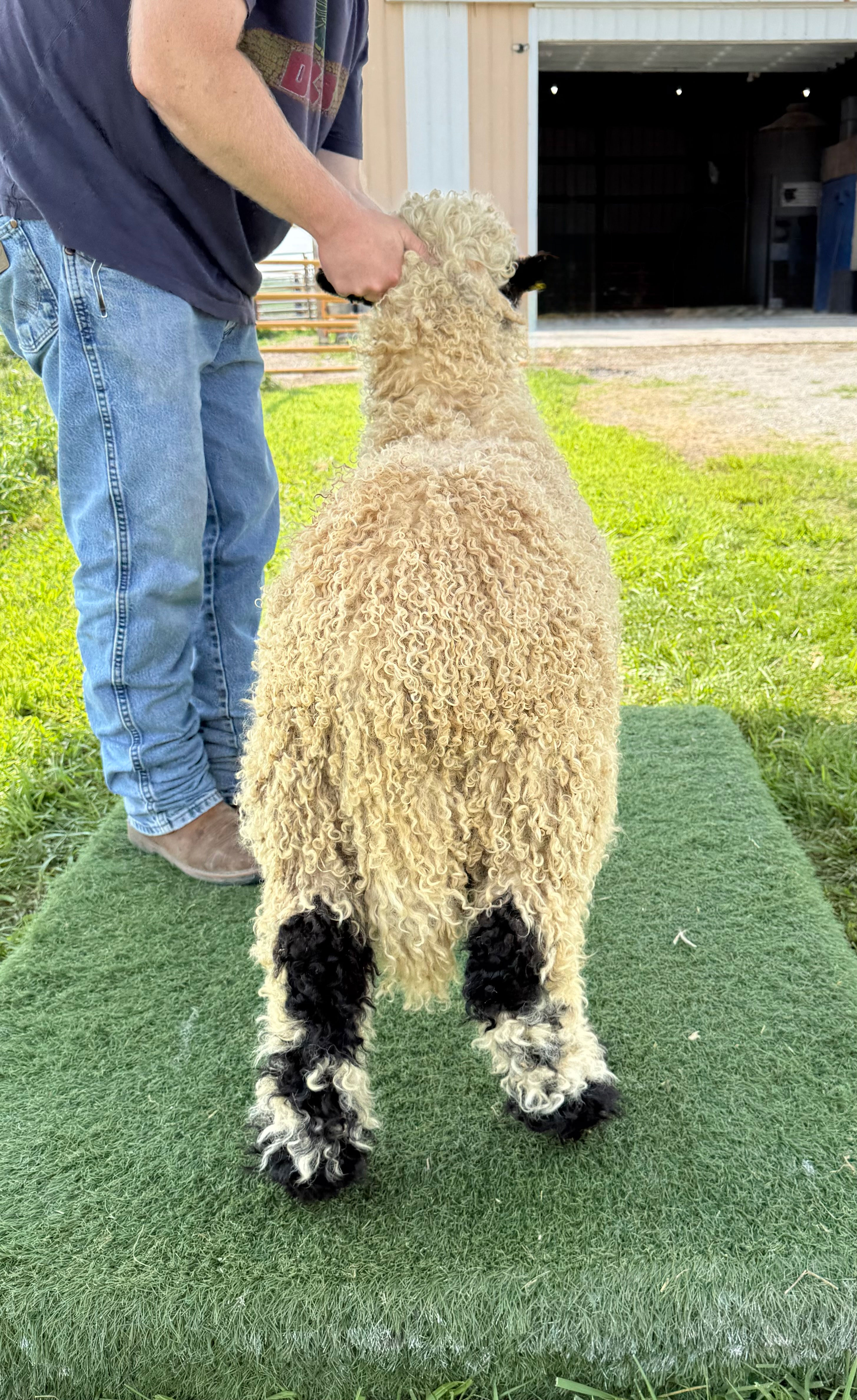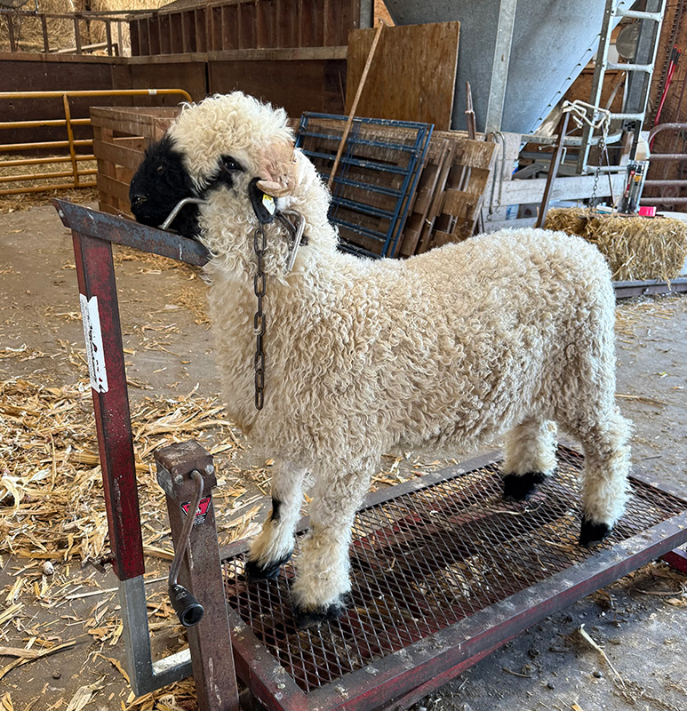 🏆Award-Winning Wether! Overall Champion Wether! … IOWA MOWGLI! Check out this handsome fella! Picture perfect PUREBRED Valais Blacknose! Mowgli was the Champion Purebred Wether and Overall Champion Wether at the 2025 USA National Valais Blacknose Sheep Show, Des Moines, Iowa. Wethers are friendlier and make great pets! Mowgli would love to be your spoiled pasture pet and beautiful lawn ornament. He would also make a great companion for another sheep. 🤩Better yet, make him your PR spokesman and show him off at public events! If you don’t, we will!